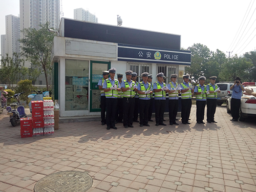 無論是寒冬的三九天還是酷夏的高溫日,他們都像一顆顆白楊挺拔的站在我們出行的路口處。霧霾嚴(yán)重的惡劣天氣、炎炎夏日的煩躁時節(jié),都有他們?yōu)槲覀兪刈o(hù)平安。在這夏至?xí)r節(jié)滄州智博信息技術(shù)有限公司自發(fā)組織了交警慰問活動,同時給五個站點的交警同志送去了礦泉水、冰糖雪梨、方便面、口罩等解暑物資。為滄州的交警同志送去了炎炎夏日的一絲清涼并表達(dá)了內(nèi)心的關(guān)切。